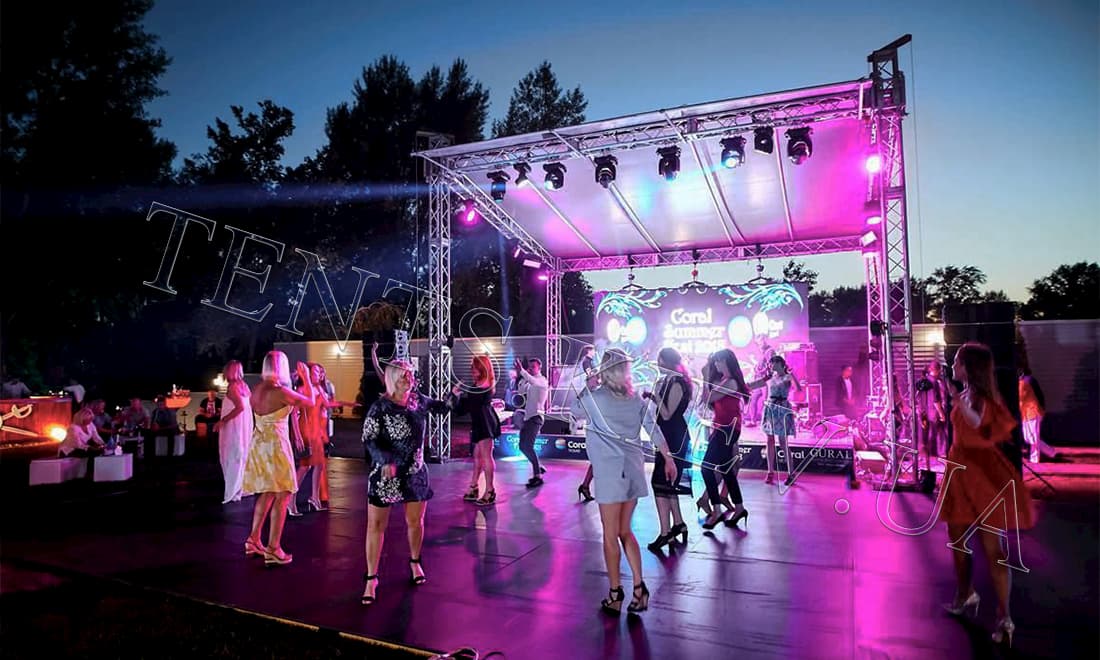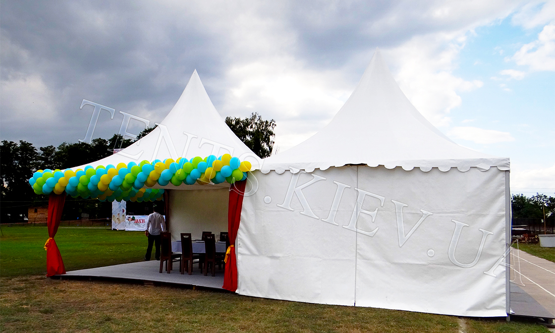 Використовуючи модулі Мультифлекс, можна формувати тенти потрібних розмірів. При цьому кожна конструкція буде мати в єдиний вид і забезпечуватиме захист від дощу, вітру та сонця. Мультифлекс шатро в оренду — це висока швидкість монтажу та демонтажу, а також можливість стикування з Пагодами.